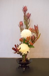The Enshu style of flower arranging became extremely popular not only among the nobles and members of the Samurai class but also among the masses. This flower arrangement style was well depicted in Ukiyoe color prints, an art which was at its height at about the same period. During the āBunka ā Bunsei -Periodā of the Edo Period, (1804-1829) the Enshu style of flower arranging spread widely throughout the country.
